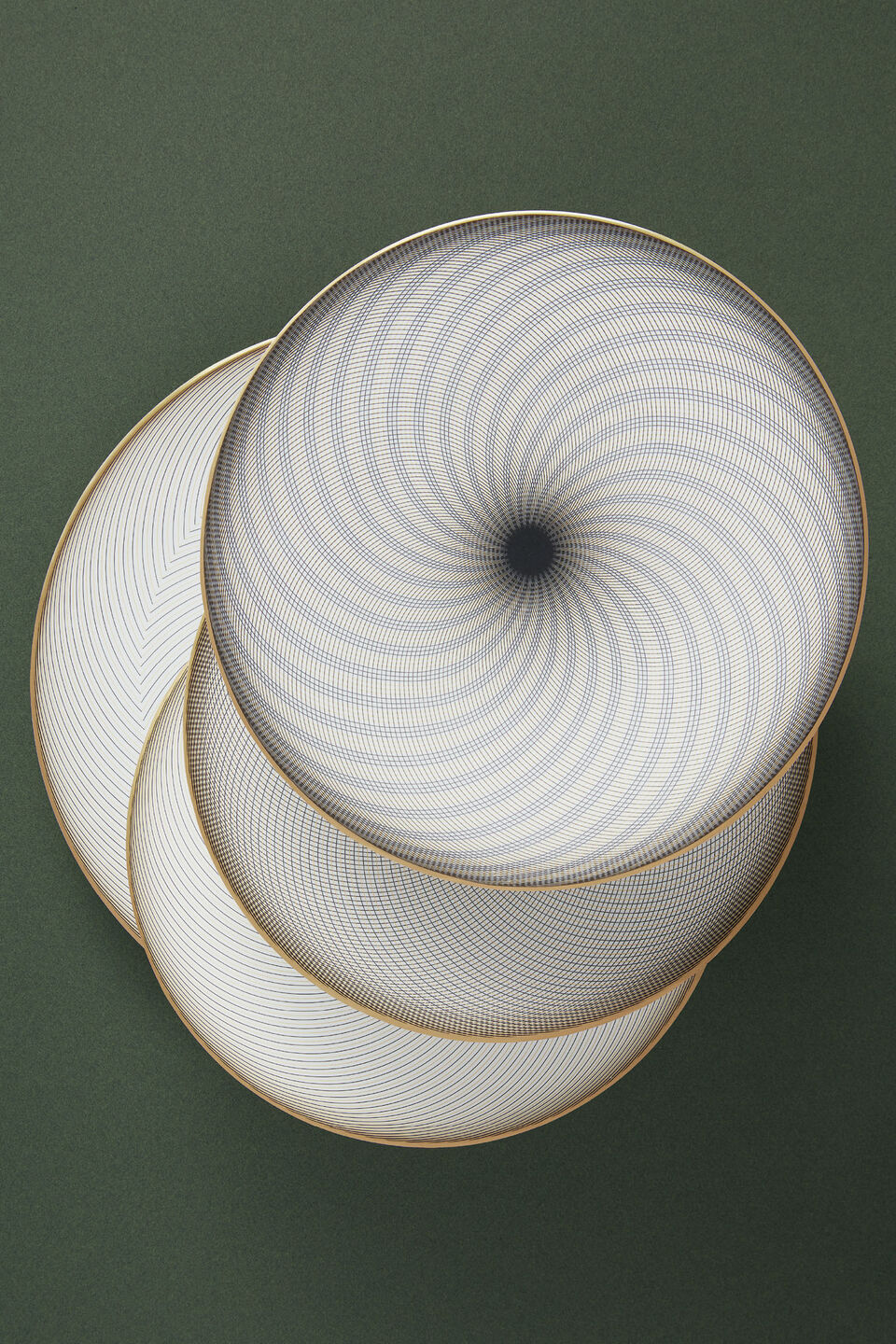 Raynaud's Oskar features black and gold geometric motifs inspired by Bauhaus, creating elegant and contrasting designs on pure white porcelain.