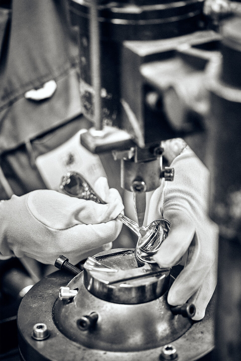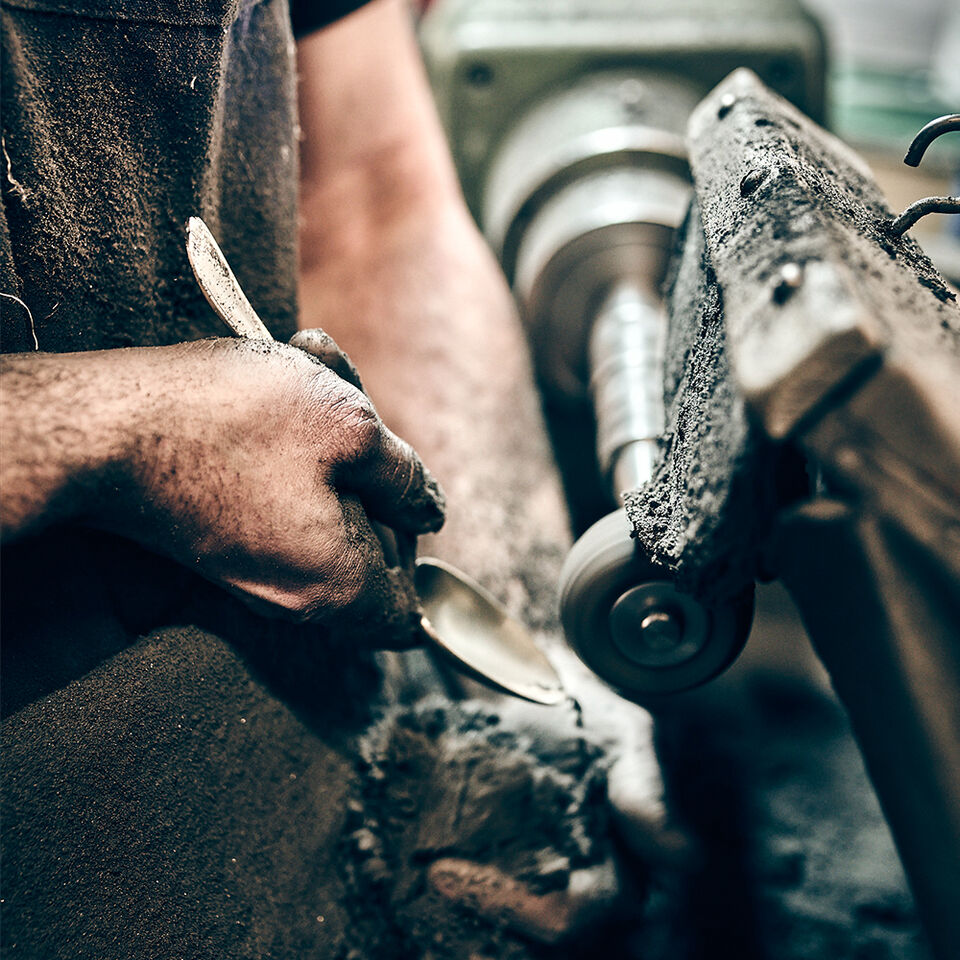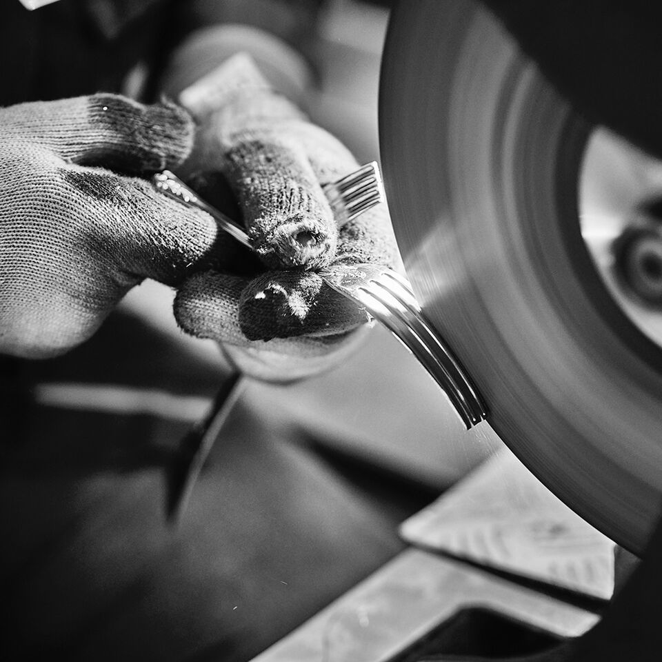 After shaping on the presses, the finishing of the cutlery requires a lot of meticulous and extremely precise manual skills.