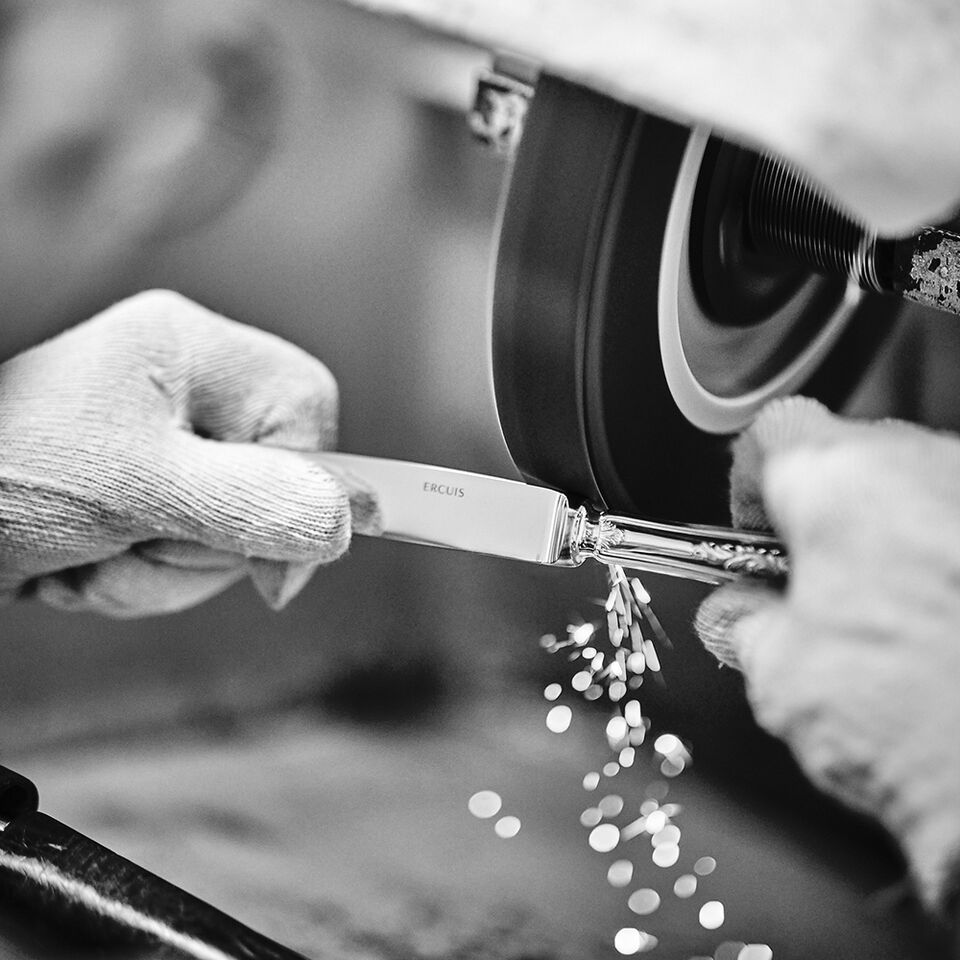 The manufacture of cutlery and holloware bearing the Ercuis hallmark requires numerous manual steps carried out by expert silversmiths throughout specific production phases. This unique and valuable savoir-faire passed down through the generations since the 19th century makes Ercuis one of France’s greatest silversmiths.