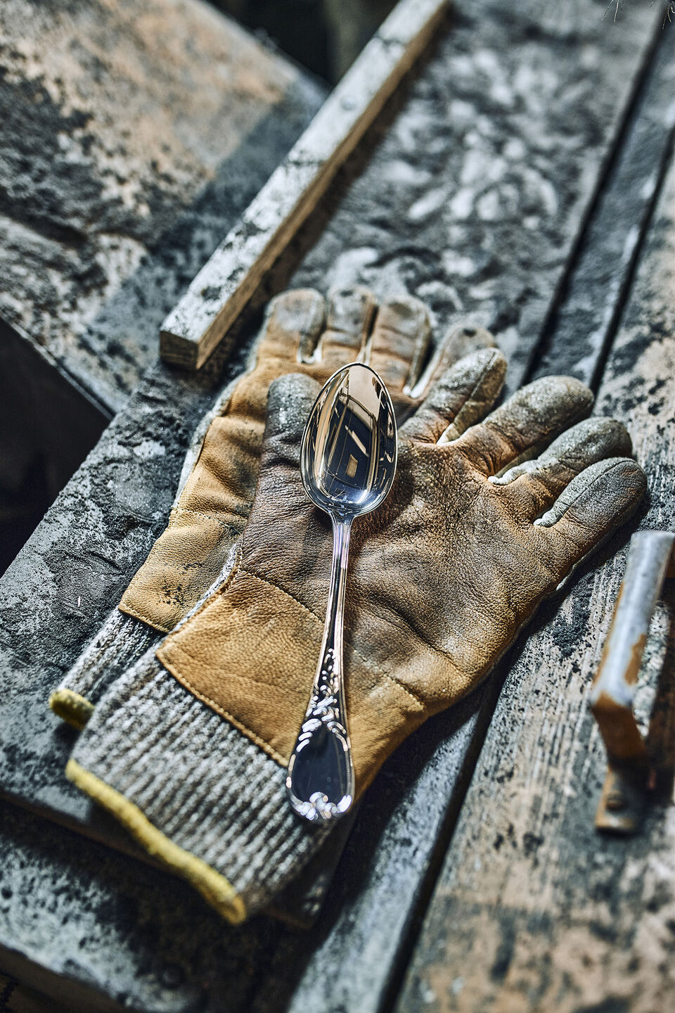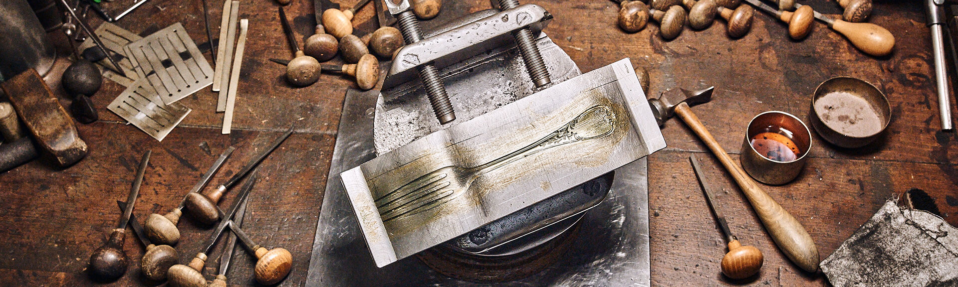 L'Insolent cutlery is created. Its grid of delicate scrolls in solid silver requires the mastery of mounting and setting close to the art of jewellery.