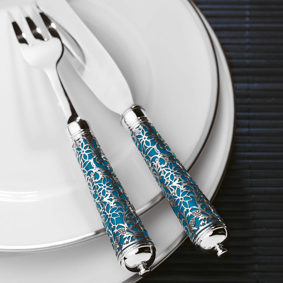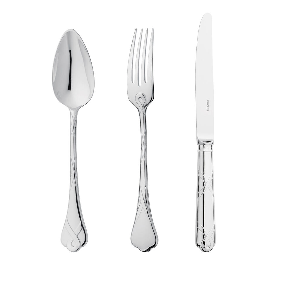 L'Insolent cutlery is created. Its grid of delicate scrolls in solid silver requires the mastery of mounting and setting close to the art of jewellery.