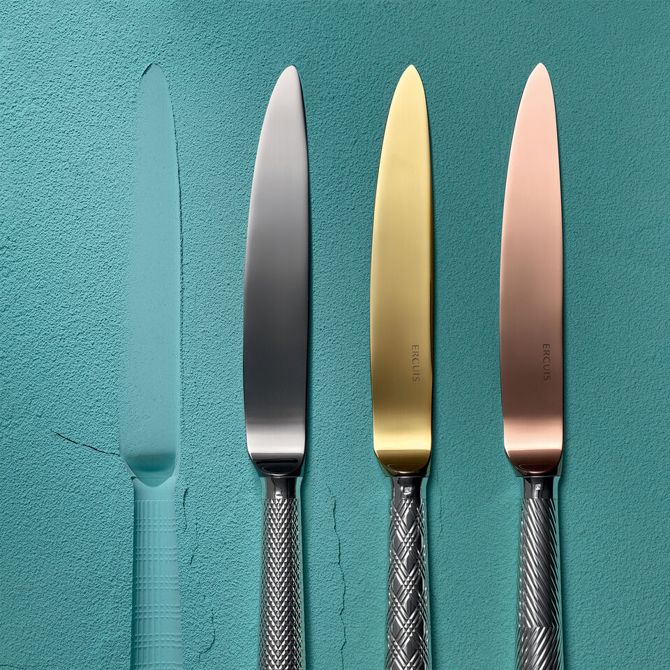 Ercuis innovates by creating a made-to-measure cutlery: Arts Décoratifs. With its colourful patterns, the cutlery has a new personality. 9 designs are to be combined with a coloured laquer to be chosen among 30 shades. A range of choices for every taste, every style and every imagination
